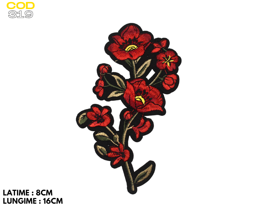 Aplicatii florale 3D-cod 319 impresionează prin designul său baroc. Lurexul strălucitor îi oferă o notă festivă.