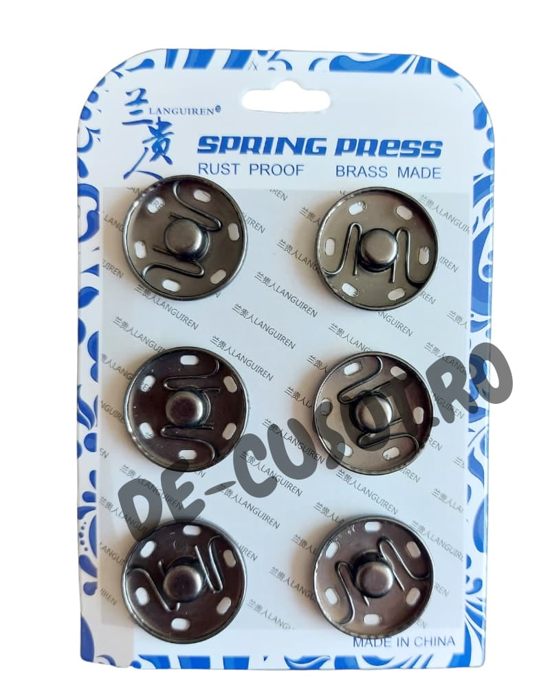 Capse de cusut la folie de 6 buc sunt dispozitiv de fixare cu prindere (numit și știft de presă) este o pereche de discuri interblocate, realizate dintr-un metal sau plastic, utilizate în mod obișnuit în locul butoanelor tradiționale pentru a fixa îmbrăcăminte și în alte scopuri similare. O buză circulară sub un disc se încadrează într-o canelură pe partea superioară a celuilalt, ținându-le imperecheate până se aplică o anumită forță pentru desprindere. Se folosesc la diferite tipuri de prinderi si pot fi atașate pe țesătură prin coasere.
